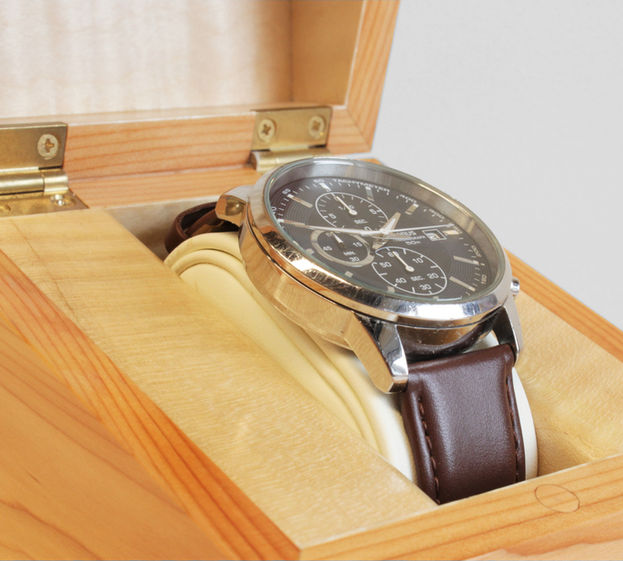 sympathetically accentuates your watch. Finished in traditional shellac and waxed to shine. Featuring brass hinges and a magnetic close. The box comes complete with the cream leather watch cushion displayed in the images.